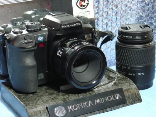 メインで使用のデジタル一眼レフ「α-7デジタル」です。当機は、主に、マクロ撮影、スポーツや野鳥撮影等の望遠撮影を担当しています。銀塩時代からミノルタをメインで、使用しています。AFの動作は伝統的に相変わらず迷いますが、DMFや本体とレンズ間のクラッチの伝達を切る、AF/MF切り替えボタンが本体上部にあり、MFへの移行がやりやすいので、自分では良しとしています(笑)。また、大口径レンズ使用でMFが主体ですので、2台所有しているα-7デジタルは、どちらもMLスクリーンに交換しています。暗いズームレンズは、滅多に使いませんが、使用する際は、αスイートデジタルが担当します。 (画像by ソニーDSC-V1)